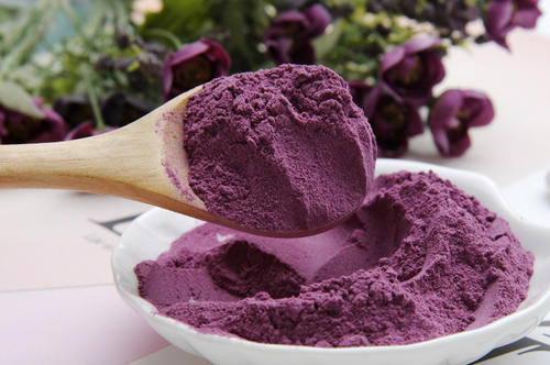 紫薯生粉:紫薯粉是以紫薯為原料,用清水洗凈,烘干,再經過機器脫皮之后,通過超溫粉碎、空氣碰撞等微分子凈化技術加工而成。保留了紫薯除皮以外的全部干物質:蛋白質、脂肪、碳水化合物、維生素、礦物質及膳食纖維等,營養豐富,具有特殊功能。紫薯粉的各種成分保留完好,能強化產品的體香、尾香,為產品提供良好的紫薯風味。