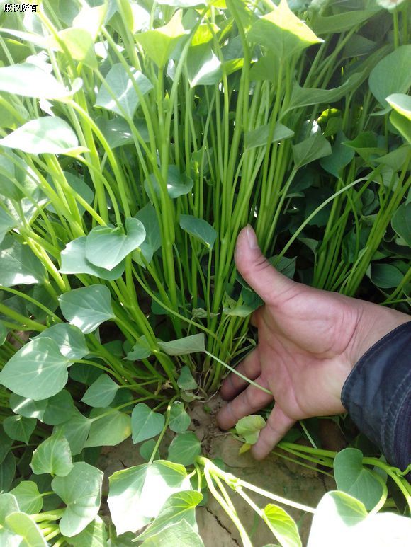 (2)可以從葉子的形狀看紫薯苗的葉子末端偏尖,紅薯苗的葉子形狀是偏圓