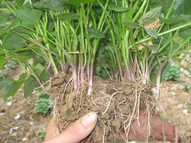 (4)從根莖看紫薯的根莖是黑紫色,紅薯根莖顏色紅色